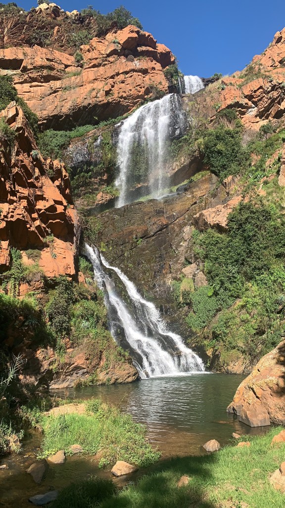 I know I sound like a broken record when I always say, the places I visit are breathtaking, it’s because they truly are. Walter Sisulu is situated in the West of Johannesburg, a place called Krugersdorp. Here the gardens are immaculate, very well kept. It is flower beds after flower beds, it is spectacular. The grass is so green, lush, and well kept, it looks fake. How can I not talk about the stunning waterfall situated just before hiking trail starts. There’s lots of places to stop and take pictures. There are beautiful spots for picnics under beautiful trees, and they sometimes host events. The birdlife at this place is incredible, the place is home to over 200 bird species. I enjoy coming here because I get to hear birds chirping while I hike. I experience a very calm, peaceful vibe when am at this place. It does not matter if am here picnicking, walking or hiking, it feels like time stands still. For a place right in the middle of the city, it sure doesn’t feel like it immediately you drive in.