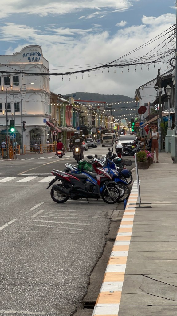 Phuket is clean. Like, confusingly clean. I walked through busy markets expecting a bit of chaos; maybe a stray chicken or someone yelling over a fish head, but nope. The place is spotless. Even where you expect grime, like the little alleys behind food stalls, I saw zero trash, and that confused my inner Joburg instincts. The scooter invasion, I was not prepared for so many of them. Phuket has scooters like Joburg has potholes (I love my city even with potholes): everywhere and unapologetic. At one point, I was convinced every man, woman, child, and probably a few brave cats had their own scooter😃. I saw a family of three on one scooter. Not even kidding. I clapped. If balance was a sport, these people are in the Olympics. The confidence while riding was on another level. I saw most women and teenagers riding without helmets. Those not driving not holding on, busy on their phones. I remember myself and Bobo we looked at each other with the disbelief. Anthony Bourdain said” travel is not reward for working, it’s education for living”, I totally agree. Theres few traffic lights, so we relied on pedestrian crossings, I can tell you this much, if you fear jay walking like me, you are in trouble. I relied on my friend Bobo to lead me just taking a leap of faith and cross because those scooters were hardly stopping for any pedestrian to cross. She’s always been the Queen of jaywalking 🤣. I remember at some point she shouted , let’s go now and I froze , she crossed. The next thing I see her on the other side of the road, and I was still standing still. She had to cross back to me and held my hand. LOL you get the picture right!? LOL