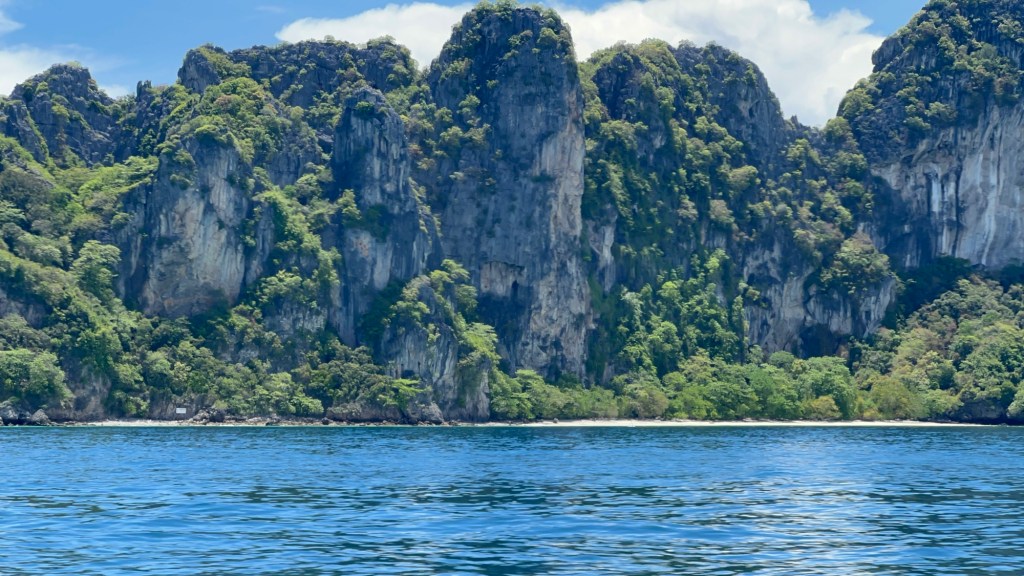 Phi Phi Don Island, where we had great lunch on the beachfront restaurant. We felt like royalties, we were welcomed with open arms. As we were about to leave for the next Island, we experienced low tide, our boat had to move further into the water and we had to walk through the water to get to our boat, I was so excited like a child on Christmas morning, it was FABTASTIC. It’s the small things right! Off we went, headed to the Monkey beach. It was lovely experience, and again on to the next one, Viking Cave. Viking Cave is notable tourist attraction known for its unique paintings and birds’ nest of salangans. The cave is protected, and tourists can’t go inside, but even seeing it from the boat was amazing. This cave is known for two famous things: