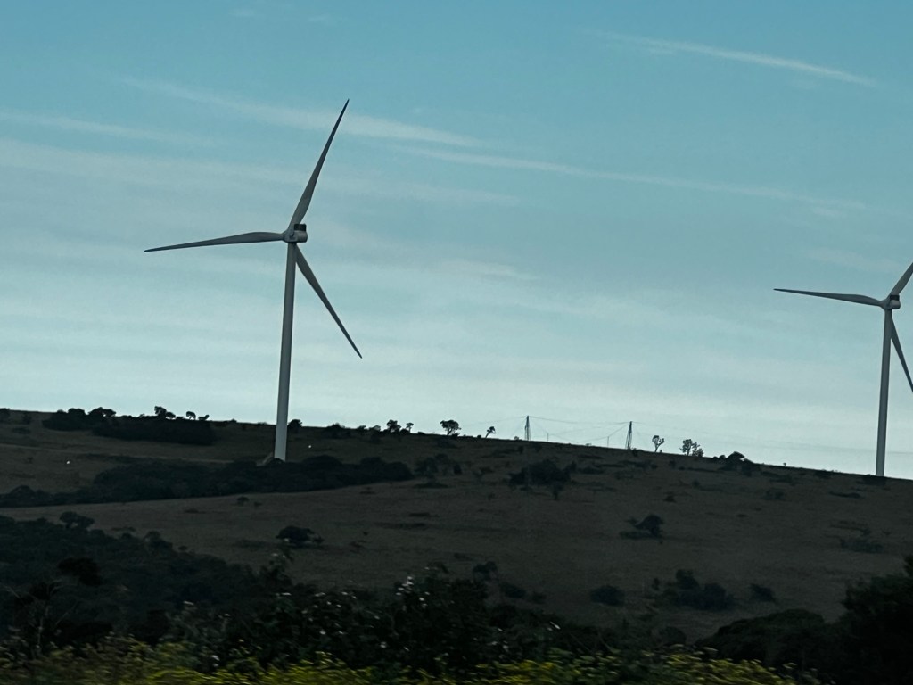 I have a confession to make: I’m obsessed with wind turbines. Don’t ask me why, but I just find them fascinating. Maybe it’s the sheer size, or the fact that they look like giant metallic creatures doing their best to save the planet. Whatever it is, I couldn’t help but geek (if that’s even a word) out when we spotted a whole line of wind turbines along our route. I felt like a kid on Christmas morning, except instead of unwrapping presents, I was pointing at these windmills and shouting, “Look at them go!” (I know, I’m weird. But it’s a harmless obsession, right?). I also discovered that my friend Nandi find the turbines scary, I know right!. I told her she watches too many movies. She says they look like a giant spider ready to sallow her. Amazing how as humans we see things differently.